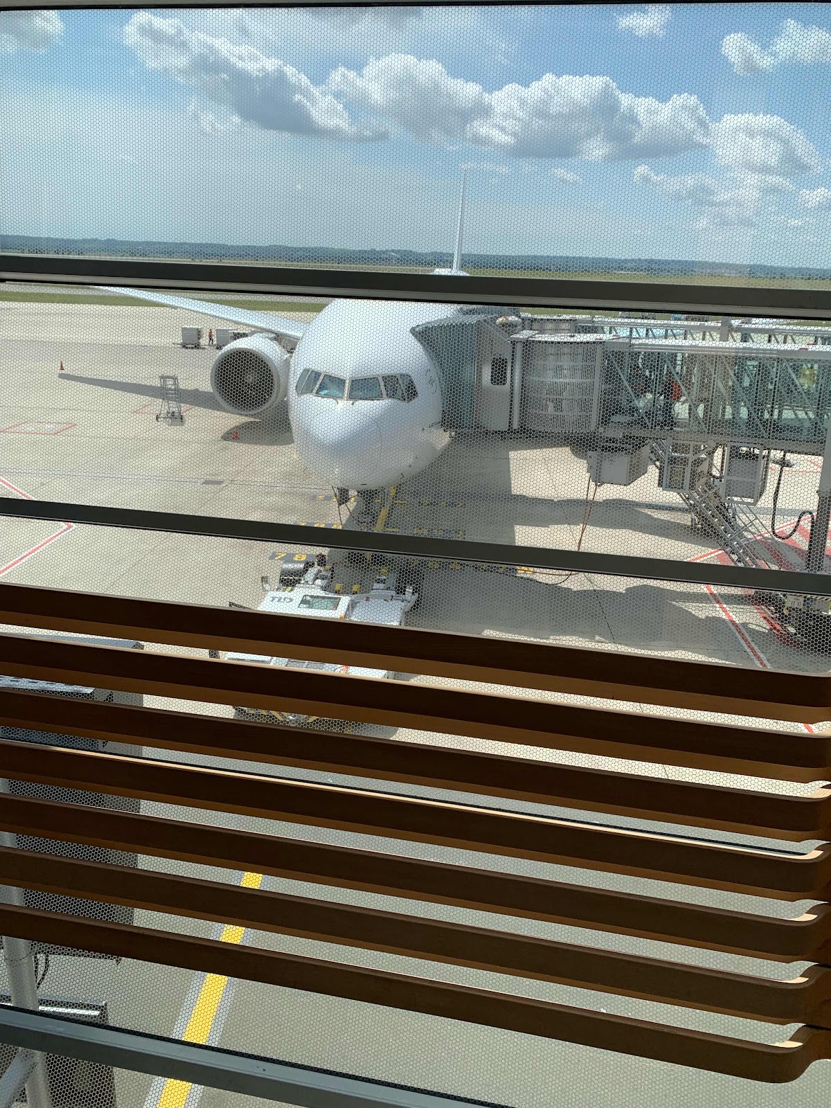 Nous avons découvert notre avion, c'est un Boeing 777-300 qui date de dix ans environ.